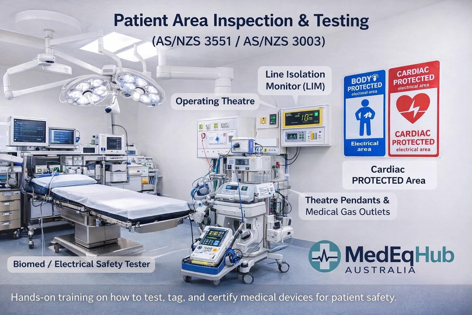 Hands‑on training on how to test, tag, and certify medical devices for patient safety.